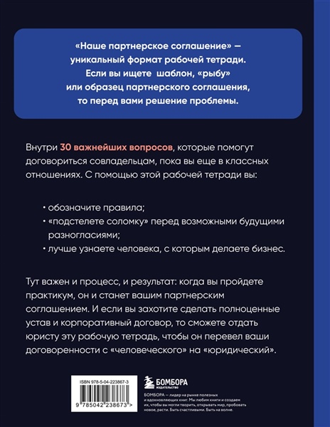 «Наше партнерское соглашение» — уникальный формат рабочей тетради. Если вы ищете шаблон, «рыбу» или образец партнерского соглашения, то перед вами решение проблемы.