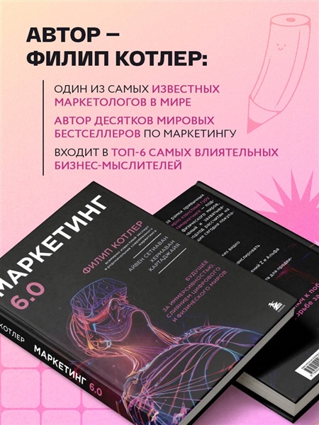 «Маркетинг 6.0» — это выход за рамки привычных концепций. Филип Котлер, всемирно известный гуру маркетинга, рассказывает о метамаркетинге — подлинном слиянии цифрового и физического миров, которое порождает интерактивный и захватывающий клиентский опыт. Этот подход рассчитан на поколения Z и Альфа, набирающие сегодня покупательскую способность.
