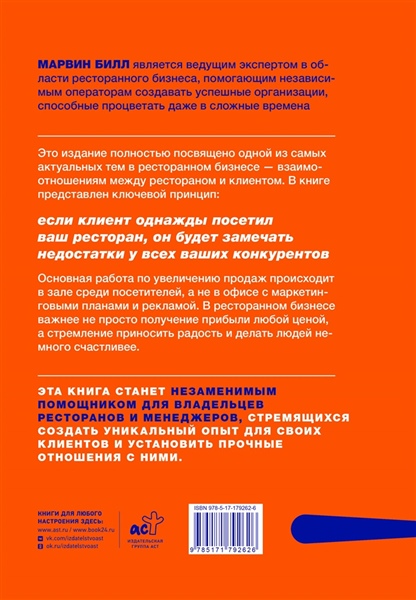 Это издание полностью посвящено одной из самых актуальных тем в ресторанном бизнесе — взаимоотношениям между рестораном и клиентом. В книге представлен ключевой принцип: