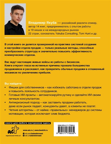 Вас ждут настоящие живые кейсы из работы с бизнесом. Книга откроет глаза на истинные причины провала большинства продажников и расскажет, как превратить обычные продажи в отлаженный механизм по увеличению прибыли.