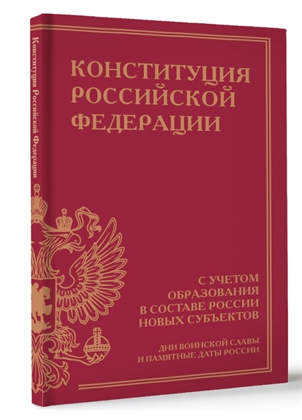 Конституция Российской Федерации в новой редакции учитывает изменения, связанные с образованием в составе Российской Федерации новых субъектов: Донецкой Народной Республики, Луганской Народной Республики, Запорожской и Херсонской областей.В издании представлены дни воинской славы и памятные даты России в соответствии с Федеральным законом от 13.03.1995 № 32-ФЗ "О днях воинской славы и памятных датах России", а также текст и музыкальная редакция Государственного гимна. В удобном формате для широкого круга читателей.