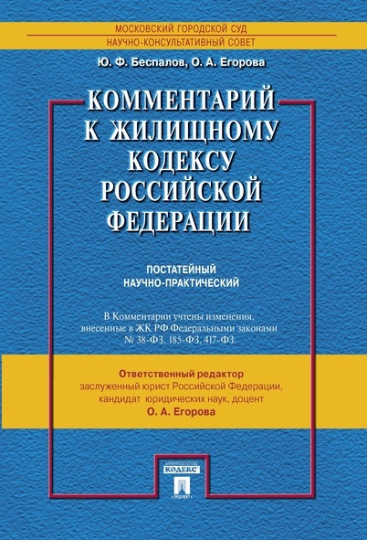 В работе анализируются положения Жилищного кодекса РФ и приводится комментарий к каждой статье. Авторы при написании комментария исходили из сложившейся судебной практики, разъяснений Пленума Верховного Суда Российской Федерации, доктринальных суждений. В комментарии даются рекомендации по устранению выявленных проблем правоприменения. Комментарий рассчитан на судей, прокуроров, адвокатов, органы государственной власти и местного самоуправления, аспирантов, студентов и всех, кто интересуется применением норм жилищного права. В комментарии учтены изменения, внесенные в ЖК РФ Федеральными законами № 38-ФЗ, 185-ФЗ, 417-ФЗ.
