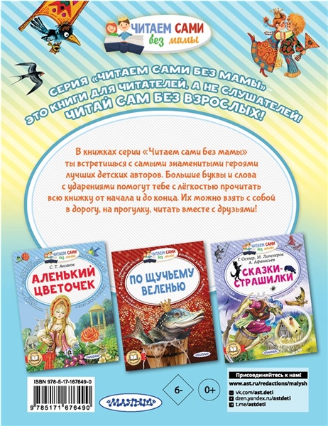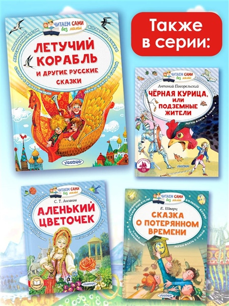 Волшебные истории русского народного фольклора станут отличным вариантом для первого чтения. Самобытные и увлекательные истории о храбрых и отважных героях научат малышей смелости, доброте и смекалке. Вместе с персонажами сказок ребята отправятся в путешествие на летучем корабле, поймают волшебного коня и узнают секрет Кощея Бессмертного. Крупные буквы и ударения помогут прочитать все истории самостоятельно. Для дошкольного и младшего школьного возраста.