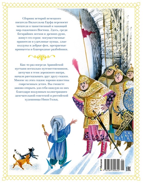 Сборник историй немецкого писателя Вильгельма Гауфа переносит читателя в таинственный и манящий мир сказочного Востока. Здесь, среди бескрайних песков и древних руин, живут его герои: могущественные правители и удачливые купцы, злые колдуны и добрые феи, прекрасные принцессы и благородные разбойники. Многие из этих сказок хорошо известны современным детям. Вы сможете заново открыть для себя каждую из них благодаря воздушным иллюстрациям замечательной советской и российской художницы Ники Гольц.