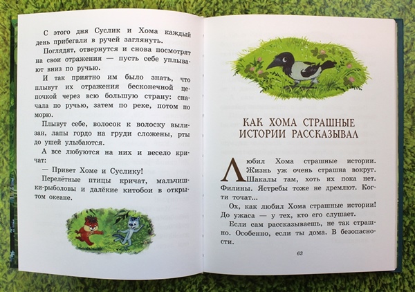 С непоседливыми и неразлучными друзьями Хомой и Сусликом не соскучишься! Каждый день с ними случаются весёлые истории: вот Хома пытается обогнать свою тень, учит Суслика правильно рыбачить, а вот Суслик пытается похитить звёзды, проверить, умеет ли плавать его отражение, или просит Хому рассказать ему страшную историю. А чтобы спастись от Лисы, Волка и Медведя, друзья даже становятся важными и невежливыми!