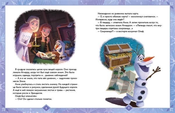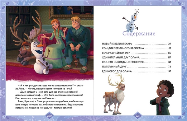 В ваших руках – новый сборник добрых историй по мотивам "Холодного сердца". Вас ждёт 8 историй об Анне, Эльзе и их друзьях, как старых, так и новых. Кого Олаф искал в Зачарованном лесу, прибежав туда из библиотеки? Зачем Анна и Эльза отправились к загадочной пещере в горах? Почему иногда в Эренделле дети лепят снеговиков ночью? В какие игры больше всего любит играть королевская семья? Узнайте ответы на эти вопросы в волшебных историях из самого чудесного места на свете – королевства Эренделл!