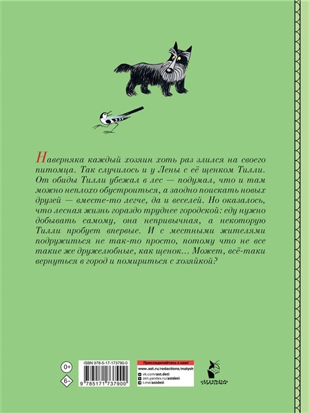 Писатель Ян Леопольдович Ларри (1900 — 1977) известен своей знаменитой повестью "Необыкновенные приключения Карика и Вали". Кроме неё он написал много других произведений, среди которых сказка "Храбрый Тилли. Записки щенка, написанные хвостом". Она впервые увидела свет на страницах журнала "Мурзилка" в 1970 году. Это добрая история о том, как щенок Тилли поругался со своей хозяйкой и убежал в лес. Городской щенок оказался совсем не готов к жизни в лесу, поэтому хотел подружиться с местными жителями, да только не все оказались такими же доброжелательными, как Тилли… Иллюстрации к сказке нарисовал Народный художник РФ Виктор Чижиков. Для младшего школьного возраста.