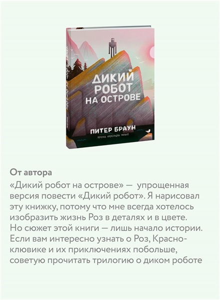 Иллюстрированная адаптация первой части трилогии о диком роботе Подарок тем, кто скучает по Роз и ее друзьям Мир, где дружат звери, люди и машины