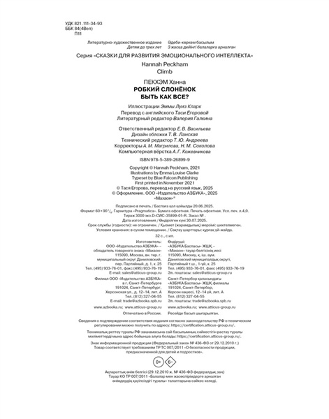 Однажды малышка Хетти, лесной слонёнок, решила научиться лазать по деревьям. Так сильно ей не хотелось выделяться. Но оказалось, что быть как все – совсем не весело…