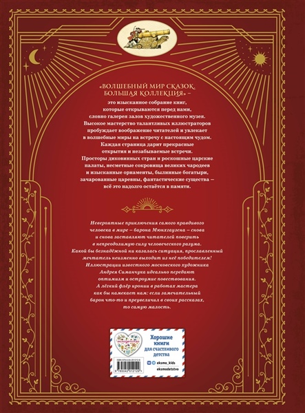 Иллюстрации известного московского художника Андрея Симанчука идеально передают оптимизм и остроумие повествования. А лёгкий флёр иронии в работах мастера как бы намекает нам: если замечательный барон что-то и преувеличил в своих рассказах, то самую малость.