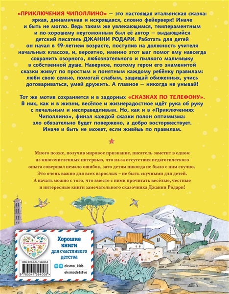 В книгу вошли всемирно известная сказка Джанни Родари "Приключения Чиполлино" с иллюстрациями Вадима Челака, а также 10 интереснейших историй из цикла "Сказки по телефону" с новыми акварельными рисунками Андрея Крысова.
