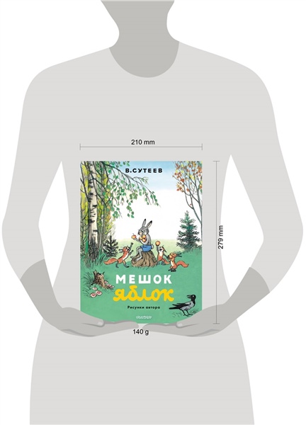 В книгу вошла сказка знаменитого художника-сказочника В. Сутеева "Мешок яблок". Заяц отправился за яблочками для своих зайчат. Набрал целый мешок. Но по пути домой встретил столько друзей! Каждого надо угостить. Донесёт ли заяц яблоки до дома? Любимых героев можно увидеть и на экране. В 1974 году вышел одноименный мультфильм. Для детей до 3-х лет.
