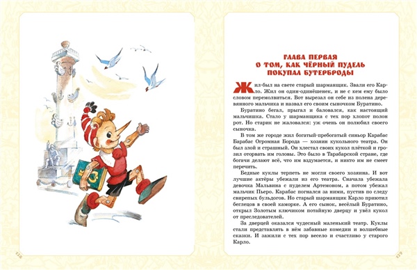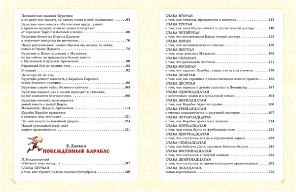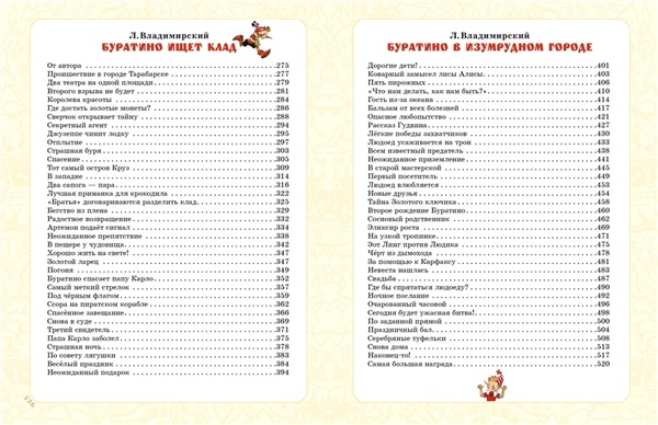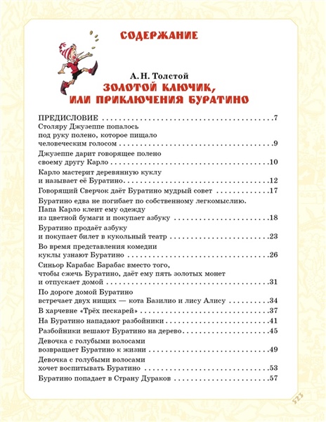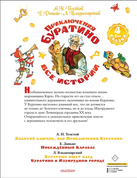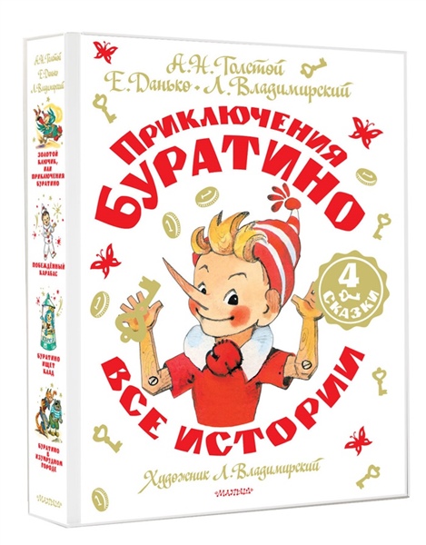В книгу вошли все истории о приключениях Буратино с рисунками Л. В. Владимирского.