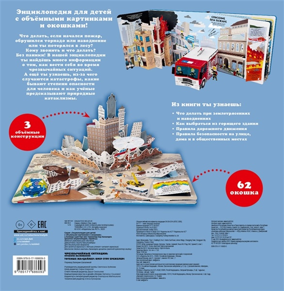 Что делать, если начался пожар, обрушился торнадо или наводнение или ты потерялся в лесу? Кому звонить и что делать? Без паники! В нашей энциклопедии ты найдёшь много информации о том, как вести себя во время чрезвычайных ситуаций. А ещё ты узнаешь, из-за чего случаются катастрофы, какие бывают степени опасности для человека и как учёные предсказывают природные катаклизмы. Из книги ты узнаешь: • Что делать при землетрясениях и наводнениях • Как выбраться из горящего здания • Правила дорожного движения • Правила безопасности на улице, дома и в общественных местах 62 окошка 3 объёмные конструкции