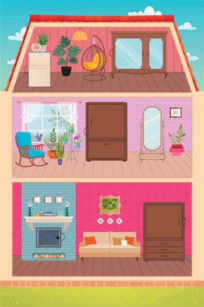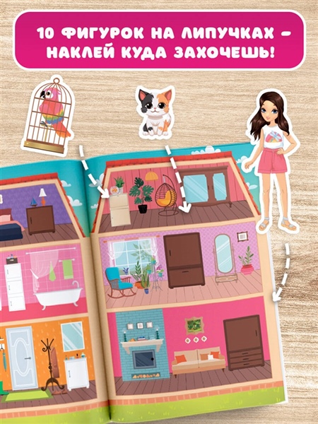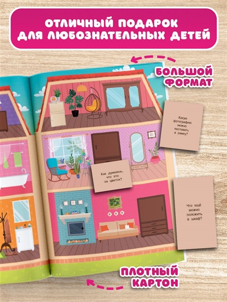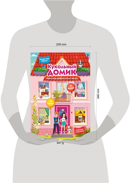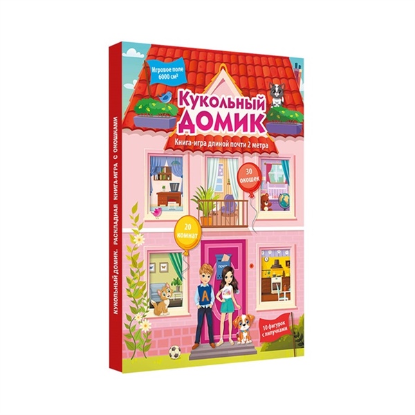Раскладная книга-игра "Кукольный домик" — лучший подарок для маленьких хозяек большого дома. Интерактивная книга легко превращается в макет 3-этажного дома с множеством самых разных комнат. Прихожая, гостиная, детская, столовая, спальня, ванная, кухня, игровая, каминная и другие — в нашем доме 20 комнат общей длиной более 2-х метров. В открывающихся клапанах-окошках дети найдут много интересного и занимательного. Книга большого формата, сделана из плотного картона и может трансформироваться в настольную или напольную игру. К книге прилагаются 10 фигурок на липучках, которых можно перемещать по дому: семья, друзья и домашние животные. Для дошкольного возраста.