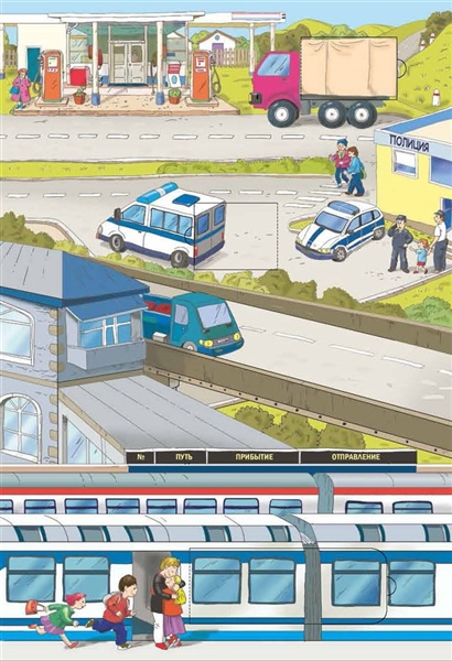 Раскладная книга-игра "Транспорт" — лучший подарок для маленьких автолюбителей. Ребят ждёт увлекательное путешествие по большому городу, в котором есть всё: дороги, мосты, жилые дома, магазины, стройплощадка, вокзал, аэропорт. И повсюду много-много самых разных машин. В открывающихся клапанах-окошках дети найдут много интересной и полезной информации. Книга большого формата, сделана из плотного картона и может трансформироваться в настольную или напольную игру. Для дошкольного возраста.