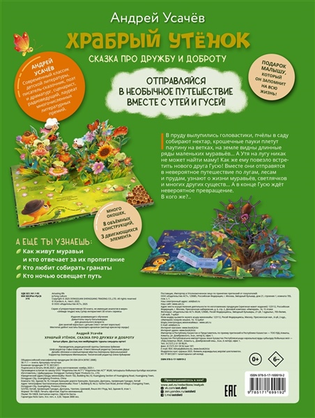 В пруду вылупились головастики, пчёлы в саду собирают нектар, крошечные пауки плетут паутину на ветках, на земле видны длинные ряды маленьких муравьёв… А Утя на лугу никак не может найти маму! Как же ему повезло встретить нового друга Гусю! Вместе они отправятся в невероятное путешествие по лугам, лесам и прудам, узнают о жизни муравьёв, светлячков и многих других существ… А в конце Гусю ждёт невероятное превращение.