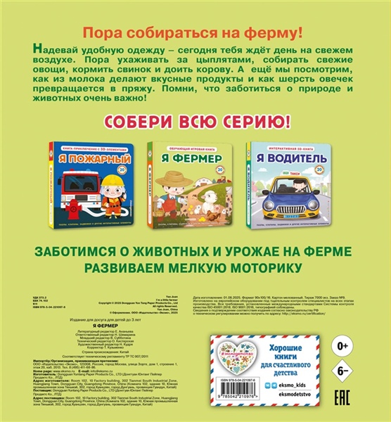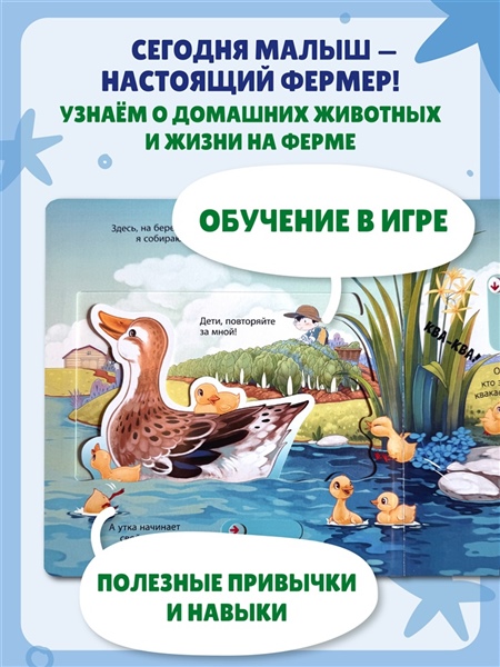 Сегодня малыш попробует себя в роли фермера! Ему предстоит провести целый день на свежем воздухе: кормить цыплят и свинок, собирать урожай, доить корову и стричь овечек. Вместе с героем книги малыш узнает столько всего интересного!