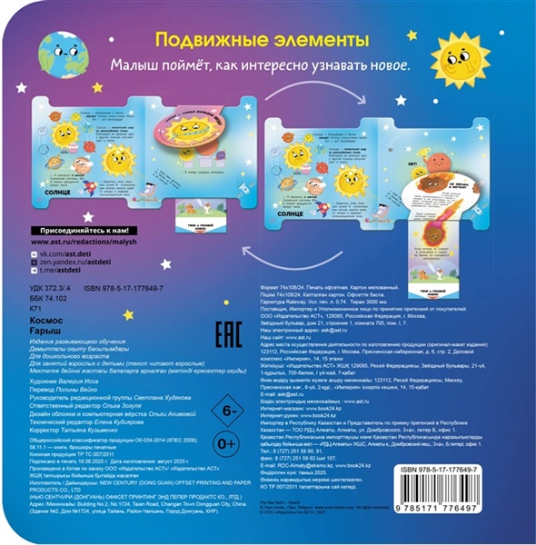 На страничках книги тебя ждут сюрпризы – двигающиеся картинки! Тяни, играй и узнавай все секреты Вселенной!