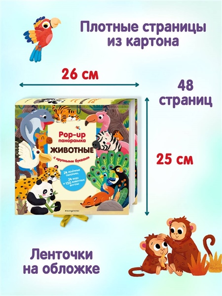 Книга-панорамка большого формата сделана из качественного плотного картона и украшена нарядными завязками-лентами. Она станет отличным подарком ребенку по любому поводу.