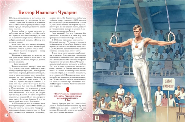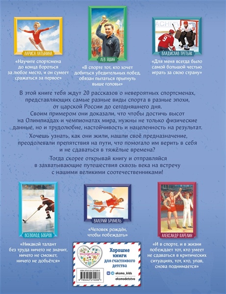 В этой книге тебя ждёт 20 рассказов о невероятных спортсменах, представляющих самые разные виды спорта в разных эпохи, от царской России до сегодняшнего дня. Своим примером они доказали, что, чтобы достичь высот на Олимпиадах и чемпионатах мира, нужны не только физические данные, но и трудолюбие, настойчивость и нацеленность на результат. Хочешь узнать, как они жили, нашли своё предназначение, преодолевали препятствия на пути, что помогало им верить в себя и не сдаваться в тяжёлые времена? Тогда скорее открывай книгу и отправляйся в захватывающие путешествия сквозь века на встречу с нашими великими соотечественниками!