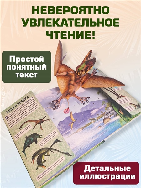 Откройте книгу — и древние ящеры оживут прямо на страницах! Все, что вы хотели знать о динозаврах триасового, юрского и мелового периодов, в одной интерактивной книге! Это не просто познавательная энциклопедия, а настоящее путешествие в доисторическую эпоху.