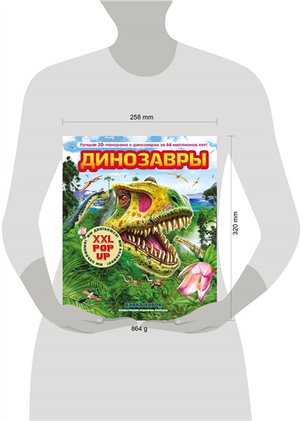 Благодаря большому формату, простому занимательному тексту, красочному оформлению и безопасным качественным материалам эта интерактивная pop-up книга про динозавров станет отличным подарком для юных любителей древних ящеров. А простой и занимательный текст подходит для восприятия детьми 4—7 лет.