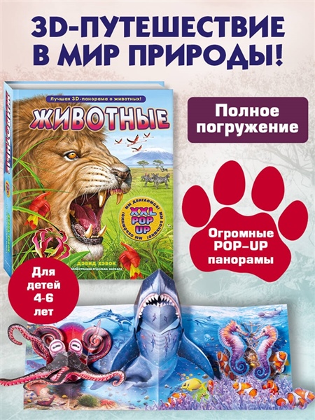 Хэвок Д. Животные (3D-энциклопедия с большими объемными pop-up фигурами, подвижными элементами и раскладывающимися панорамами. Подарочное издание)