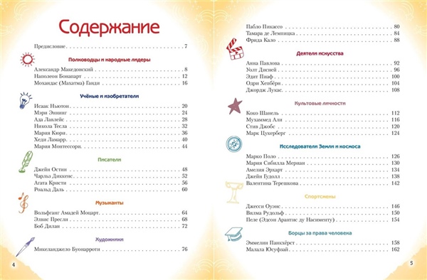 «Необыкновенные мальчики и девочки, изменившие мир» — вдохновляющая энциклопедия для детей 10—14 лет, в которой собраны мотивационные истории о 40 юных героях, выросших и ставших выдающимися учеными, исследователями, изобретателями, спортсменами и деятелями искусства. Какой атлет завоевал сразу четыре золотые медали на Олимпийских играх 1936 года? Какая исследовательница стала обладательницей сразу двух Нобелевских премий? Кто получил за свои заслуги в области мультипликации целых 26 статуэток «Оскар»? Кто из кинодив способствовал появлению Wi-Fi? В этой книге собраны самые интересные факты о детстве и пути ребят, чьи открытия, идеи и смелые мечты навсегда изменили мир. Книга станет настоящей энциклопедией вдохновения для мальчиков и девочек, мечтающих о собственных достижениях. • 40 героев, впоследствии ставших выдающимися личностями. • Удивительные примеры, мотивирующие ребят на собственные свершения! • В каждом рассказе — невероятный образец силы воли и стойкости характера! • Яркие, динамичные, запоминающиеся иллюстрации. Эта книга — отличный подарок ребенку, который любит биографии известных людей, познавательные истории и мечтает найти свое дело.