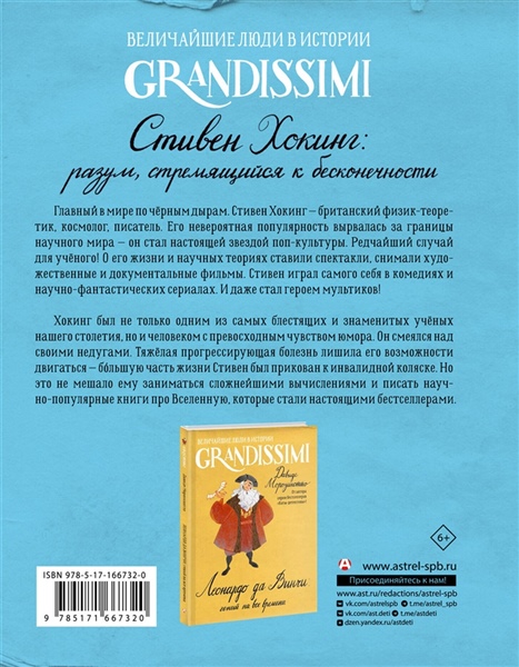 Главный в мире по чёрным дырам. Стивен Хокинг — британский физик-теоретик, космолог, писатель. Его невероятная популярность вырвалась за границы научного мира — он стал настоящей звездой поп-культуры. Редчайший случай для учёного! О его жизни и научных теориях ставили спектакли, снимали художественные и документальные фильмы. Стивен играл самого себя в комедиях и научно-фантастических сериалах. И даже стал героем мультиков!