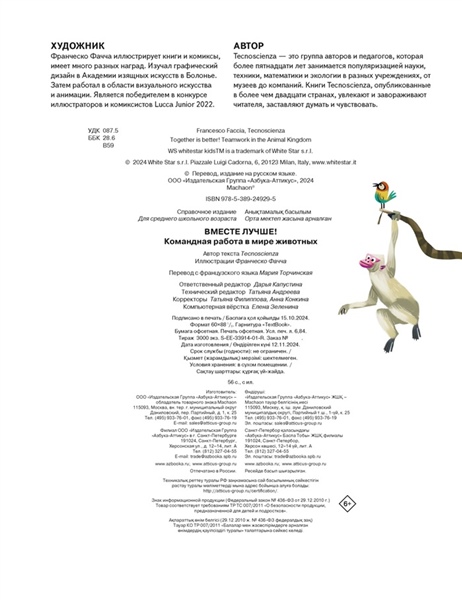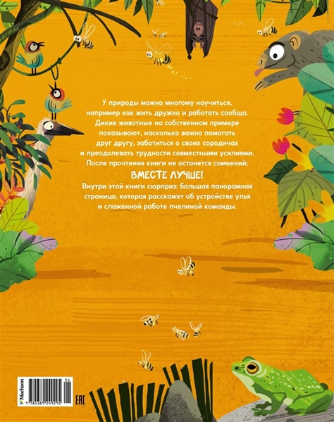 У природы можно многому научиться, например как жить дружно и работать сообща. Дикие животные на собственном примере показывают, насколько важно помогать друг другу, заботиться о своих сородичах и преодолевать трудности совместными усилиями. После прочтения книги не останется сомнений: ВМЕСТЕ ЛУЧШЕ! Внутри этой книги сюрприз: большая панорамная страница, которая расскажет об устройстве улья и слаженной работе пчелиной команды.