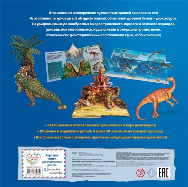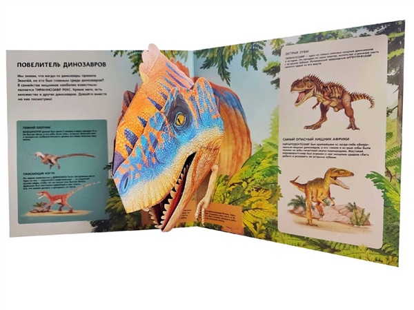 Ваш ребёнок мечтает разгадать секреты динозавров? Объёмные подвижные фигурки древних ящеров выпрыгнут ему навстречу прямо со страниц этой уникальной книги-панорамки!