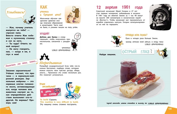 Подарок для вашего ребенка к любому празднику! Большая книга головоломок и поделок с яркими картинками и увлекательными заданиями подойдет мальчикам и девочкам6, 7, 8, 9 лет. С ее помощью легко развить внимание и память, логическое мышление и интеллект, речь и воображение, и даже чувство юмора. А еще — начать изучать английский язык и освоить несложные приемы релакса от психологов. Роскошное подарочное издание украсит домашнюю библиотеку и станет прекрасным подарком на день рождения, 1 сентября, 8 марта, 23 февраля, Новый год, выпускной в детском саду, да и просто без повода. Внутри — ребусы, шарады, головоломки, забавные анекдоты, интересные исторические факты и викторины. Ребенок с удовольствием будет заниматься по книжке и самостоятельно, и с друзьями, одновременно формируя позитивное отношение к учебе и расширяя кругозор. Эта книга — отличный способ организовать полезный досуг детей.