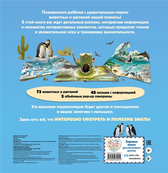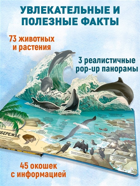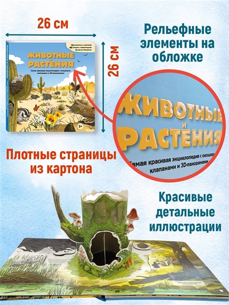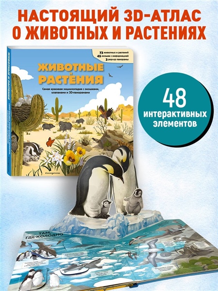 Самая красочная 3D-энциклопедия о животных и растениях со всего света! Потрясающие pop-up панорамы, клапаны и окошки на каждой странице!