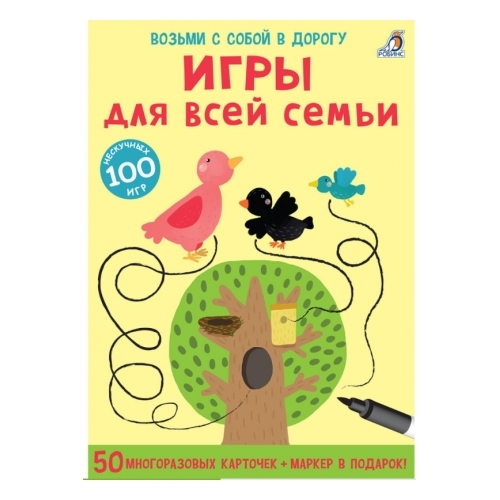 В набор входит 50 двусторонних многоразовых карточек с заданиями для разных возрастов: в нем есть игры и задания для дошкольников от трех лет, а также головоломки, которые будут интересны школьникам и даже взрослым.В чм особенность набора:- Каждая карточкаэто интересная задачка и яркая картинка.- Благодаря удобному формату карточки можно брать с собой в дорогу.- Карточки сделаны из картона и покрыты защитной плнкой.- Занятия с набором способствуют развитию логического мышления, внимания, речи, памяти, воображения и мелкой моторики.Что найдем внутри:50 двусторонних многоразовых карточек, карточки с ответами и маркер на водной основе для работы с набором.100 увлекательных игр-заданий разных уровней сложности и видов: лабиринты, головоломки, "дорисуйки", хитрые задачки и задания типа "найди лишнее", "найди отличия", "найди спрятанные картинки" и много-много других.Важно знать родителям:-Набор карточек предназначен для детей от 3 лет, а также для детей школьного возраста и родителей.- Для работы с карточками можно использовать любой фломастер на водной основе, который легко стирается, что позволяет выполнять задания много раз.- Рекомендовано как для индивидуальных, так и для групповых занятий, а также для игр в семье, в компании и в поездках.