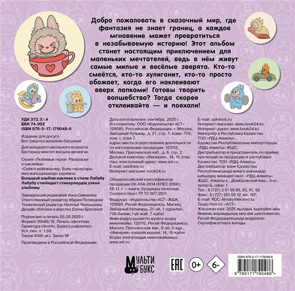 Добро пожаловать в сказочный мир, где фантазия не знает границ, а каждое мгновение может превратиться в незабываемую историю! Этот альбом станет настоящим приключением для маленьких мечтателей, ведь в нём живут самые милые и весёлые зверята. Кто-то смеётся, кто-то хулиганит, кто-то просто обожает, когда его наклеивают вверх лапками! Готовы творить волшебство? Тогда скорее отклеивайте — и поехали!