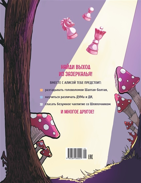В этой книге тебя ждут увлекательные задания, которые отправят в таинственные приключения вместе с Алисой в обратном мире, полном необычных персонажей и захватывающих событий!
