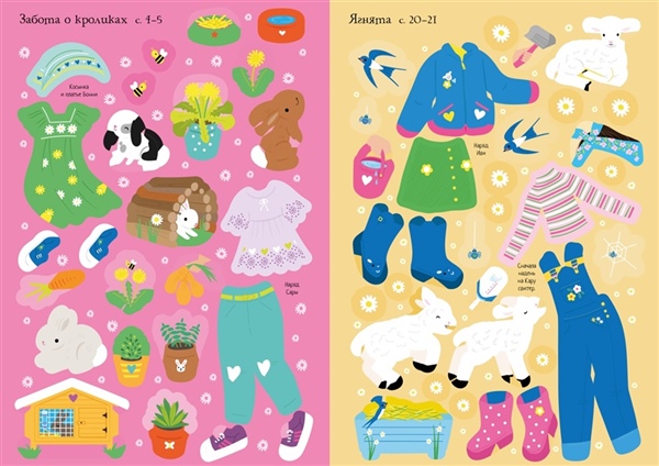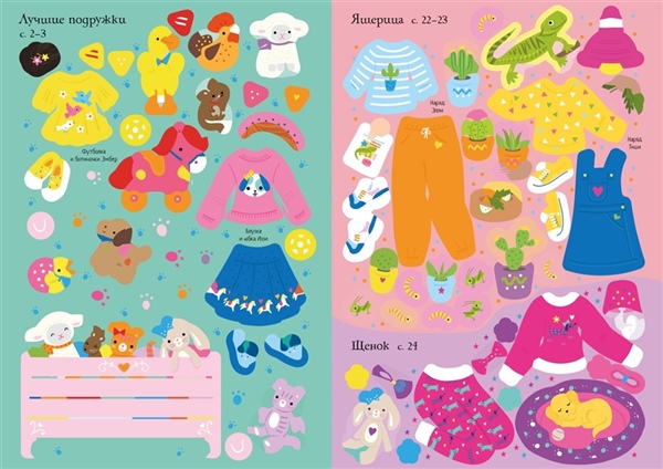 Познакомься с милыми питомцами: кроликами, котятами, щенками, ягнятами и лошадками – и подбери девочкам красивые наряды для прогулок. Читаем и играем! Развиваем внимание, воображение, мелкую моторику, художественный вкус и эмоциональный интеллект.