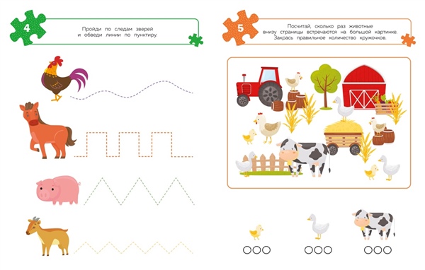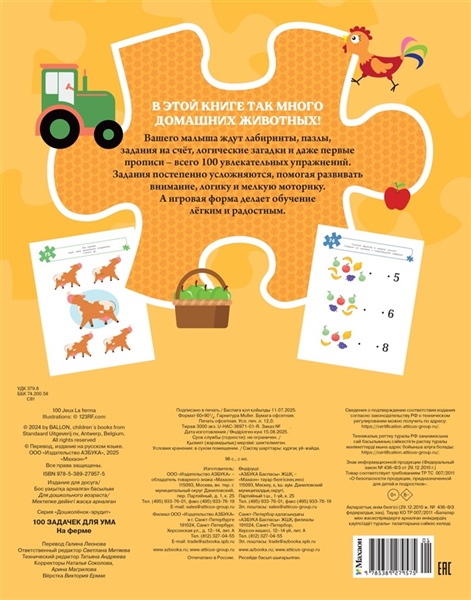 В этой книге так много домашнихживотных! Собирайте пазлы, решайте судоку, проходите лабиринты, раскрашивайте картинки, научитесь писать цифры. Вас ждут 100 увлекательных заданий, которые развивают внимание, мышление и воображение, а также помогают научиться считать. Ребёнок получит возможность развиваться в игровой форме, а возрастающая сложность заданий поддержит его интерес к обучению!