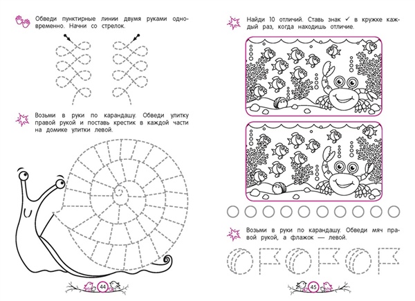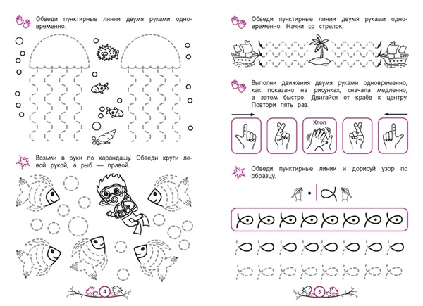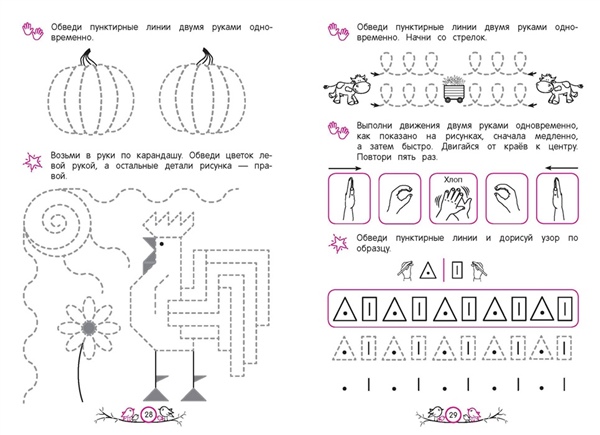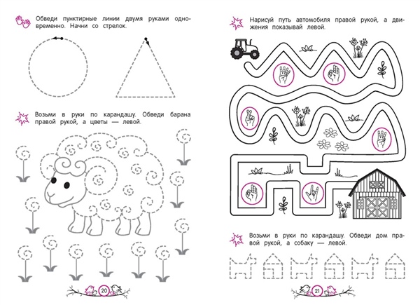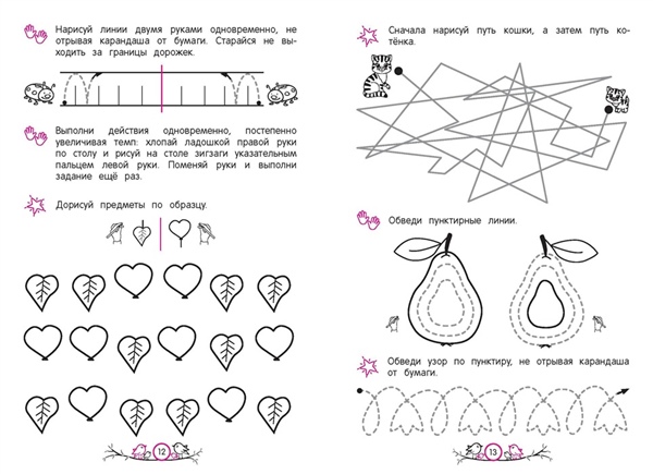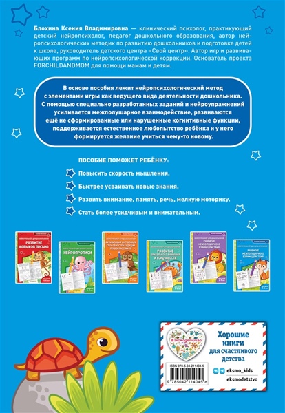Обучающее пособие от издательства «Эксмо» разработано практикующим нейропсихологом и поможет ребёнку 5—6 лет активизировать работу мозга, основываясь на нейропсихологическом методе обучения. Чем лучше взаимодействуют оба полушария, тем эффективнее дошкольник воспринимает информацию и адаптируется к новым видам деятельности. Занимаясь, ребёнок будет выполнять разнообразные нейроупражнения: обводить пунктирные линии двумя руками одновременно; проходить нейролабиринты; дорисовывать узоры по образцу; проводить линии, не отрывая карандаш от бумаги; находить отличия на картинках. Благодаря этому дошкольник сможет: 1) увеличить скорость мышления и способность усваивать новые знания; 2) развить внимание и память; 3) улучшить координацию движений; 4) быстрее ориентироваться в задачах, требующих анализа и воображения; 5) научиться быстро принимать решения; 5) повысить навыки самоконтроля. Всё это является важными элементами подготовки к школе. Нейроразминки помогут проработать движения на моторном уровне. Чем лучше ребёнок владеет собственными руками, тем меньше они устают и тем легче проходит обучение. Используя эту книгу, родители с лёгкостью помогут ребёнку получить важнейшие навыки через познавательную игру.