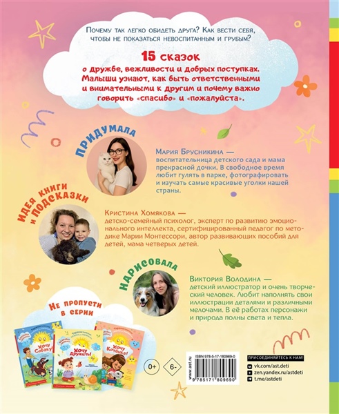 Почему так легко обидеть друга? Как вести себя, чтобы не показаться невоспитанным и грубым? 15 сказок о дружбе, вежливости и добрых поступках. Малыши узнают, как быть ответственными и внимательными к другим и почему важно говорить "спасибо" и "пожалуйста".