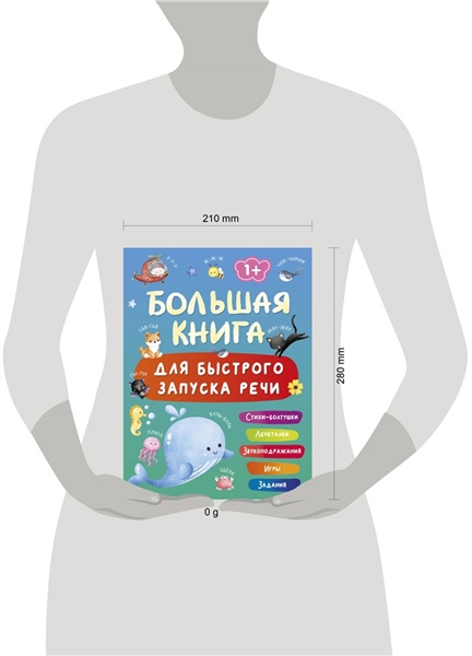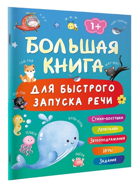 "Большая книга для быстрого запуска речи. 1-2 года" — полезное и красивое издание со стихами-болтушками, лепеталками, звукоподражаниями, играми и развивающими заданиями. В книге собраны все важные темы для развития речи и увеличения словарного запаса: животные, растения, овощи, фрукты, игрушки, транспорт, времена года, распорядок дня, цвета и многое другое. Для детей 1-2 лет.