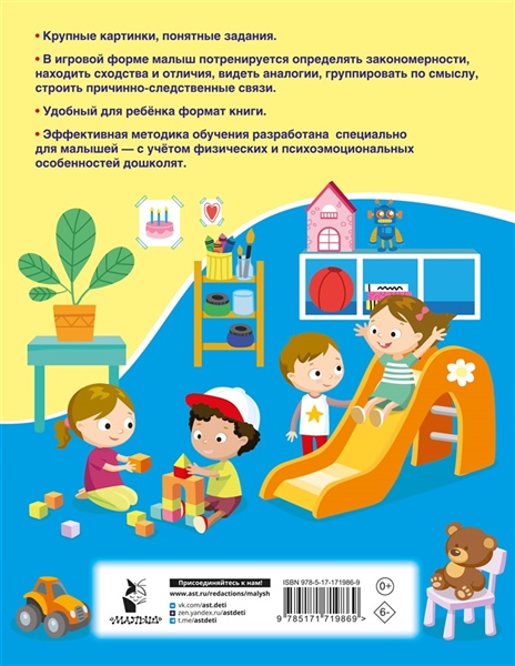 Книга "Логические задачки" поможет ребёнку сделать первые шаги на пути формирования логического мышления. В игровой форме малыш потренируется определять закономерности, находить сходства и отличия, видеть аналогии, группировать по смыслу, строить причинно-следственные связи. Для дошкольного возраста.