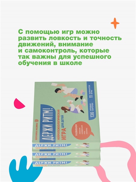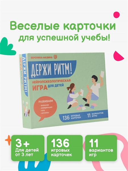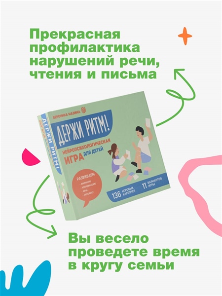 Нейропсихологическая игра для детей "Держи ритм!" Вероники Мазиной – это прекрасная профилактика нарушений речи, чтения и письма. С её помощью так легко и увлекательно, весело в дружной компании можно развить ловкость и точность движений, внимание и самоконтроль, которые так важны для успешного обучения.