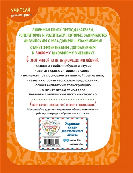 Книга, которую настоятельно рекомендуют преподаватели, репетиторы и те, кто занимается английским с детьми, теперь представлена в новом мини-формате. Размер книги уменьшился, но вся информация осталась в полном объёме! Этот учебник — реальный способ не только заложить прочный фундамент знаний английского языка, но и освоить важную тему, на которую в школе обычно не хватает времени, а именно — научиться читать по-английски. И даже транскрипция окажется не страшной, а понятной и очень полезной! Основы грамматики объясняются именно для детей — несложно, коротко, понятным языком. Множество примеров и упражнений помогут запомнить новые слова и конструкции, эффективно их отработать и научиться правильно применять. Забавные упражнения и понятные объяснения теперь сопровождаются яркими современными иллюстрациями, которые непременно понравятся детям. Книга уменьшенного формата легче, поэтому её удобно брать с собой в дорогу, да и в портфеле она займёт меньше места!