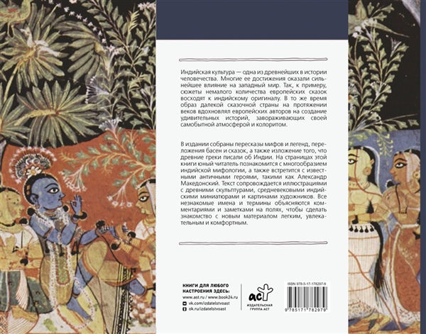 В издании собраны пересказы мифов и легенд, переложения басен и сказок, а также изложение того, что древние греки писали об Индии. На страницах этой книги юный читатель познакомится с многообразием индийской мифологии, а также встретится с известными античными героями, такими как Александр Македонский. Текст сопровождается иллюстрациями с древними скульптурами, средневековыми индийскими миниатюрами и картинами художников. Все незнакомые имена и термины объясняются комментариями и заметками на полях, чтобы сделать знакомство с новым материалом легким, увлекательным и комфортным.