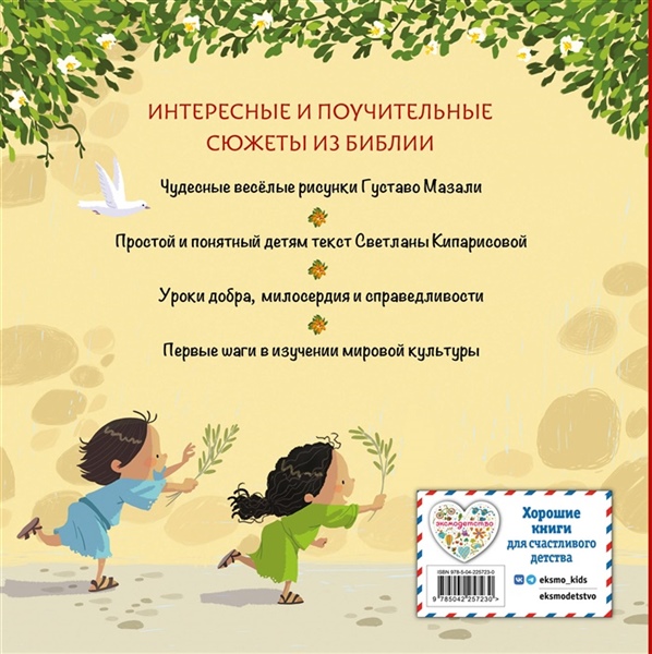 ПЕРВОЕ ЗНАКОМСТВО РЕБЕНКА С БИБЛИЕЙ. Библия — великая книга. Но как познакомить с ней ребенка? Вы думаете, что еще рано? Нет! Сейчас самое время, потому что у вас в руках уникальное издание. На его страницах — веселые и трогательные библейские герои, созданные испанским художником Густавом Мазали. Специально для малышей кратко и интересно пересказаны самые главные истории из Библии. Открывайте книгу вместе с ребенком и путешествуйте с Ноем, Моисеем, Иосифом и Давидом. Познакомьте детей с Иисусом Христом, прочитайте первые слова о Его миссии на земле. Первые уроки мудрости, добра и милосердия навсегда останутся в детской душе. Книга удобного квадратного формата, с хорошей плотной бумагой. Каждый разворот оформлен милыми красочными иллюстрациями, которые, несомненно, придутся детям по душе. Крупный шрифт будет легко читать самостоятельно. Эта книга станет прекрасным духовным подарком для детей от 3—4 лет.