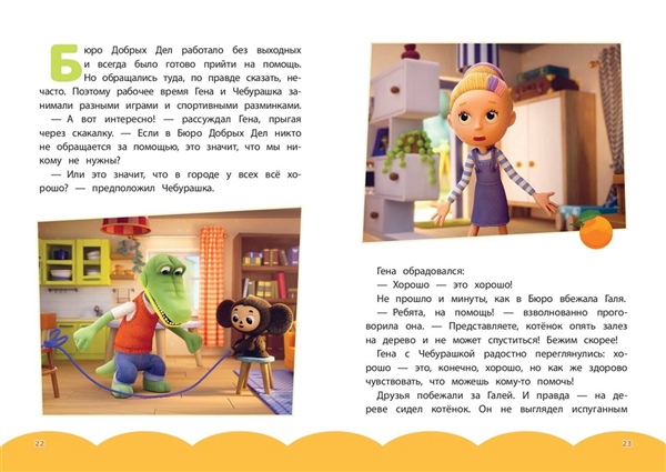 Новые приключения Чебурашки и его друзей теперь в книжном формате! Чебурашка и крокодил Гена решили, что доброты много не бывает, и открыли Бюро Добрых Дел! Но коварная Шапокляк не дремлет — она тут же основала свое Бюро Недобрых Дел. Что задумала хитрая старушка вместе с крыской Лариской? Читайте в новых приключениях! Эта книга — не просто чтение. Это возвращение в детство для взрослых и знакомство с легендой для малышей. Чебурашка учит доброте, дружбе и тому, что вместе можно преодолеть любые трудности. Издание прекрасно подойдет в качестве подарка детям 5—7 лет, ведь приятно дарить книгу с яркими кадрами из мультсериала на мелованной глянцевой бумаге.