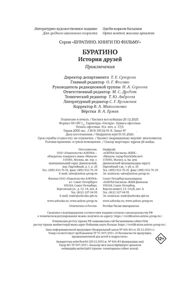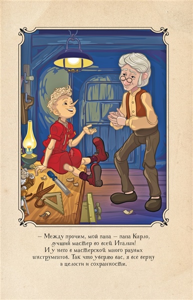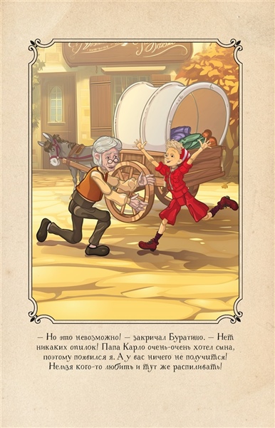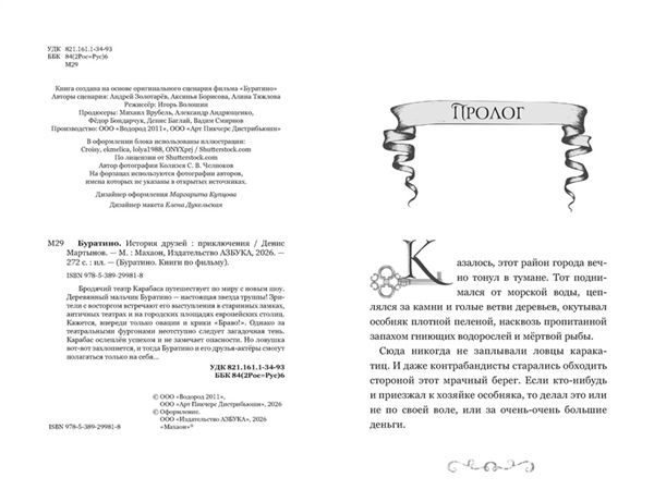Любимая детская история раскроется по-новому! С яркими цветными вклейками. Бродячий театр Карабаса путешествует по миру с новым шоу. Деревянный мальчик Буратино — настоящая звезда труппы! Зрители с восторгом встречают его выступления в старинных замках, античных театрах и на городских площадях европейских столиц. Кажется, впереди только овации и крики «браво». Однако за театральными фургонами неотступно следует загадочная тень. Карабас ослеплён успехом и не замечает опасности. Но ловушка вот-вот захлопнется, и тогда Буратино и его друзья-актёры смогут полагаться только на себя…