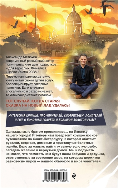 Классная фэнтези-история для детей и подростков! Внутрииллюстрации, как в комиксах, с главными фэнтези-героями. Подойдет для обсуждения с друзьями и всей семьей. Двое братьев вместе со своими самыми необычными на свете бабушкой и дедушкой отправляются на Изнанку Петербурга, чтобы спасти маму. Оказывается, что бабушка и дедушки присматривают за Изнанкой, миром, где существуют фантастические существа, например, Великан, Большая Золотая Рыба, Чинители швов, соединяющих наш мир и изнаночный. И... новый взгляд на сказку о Золотой Рыбке!